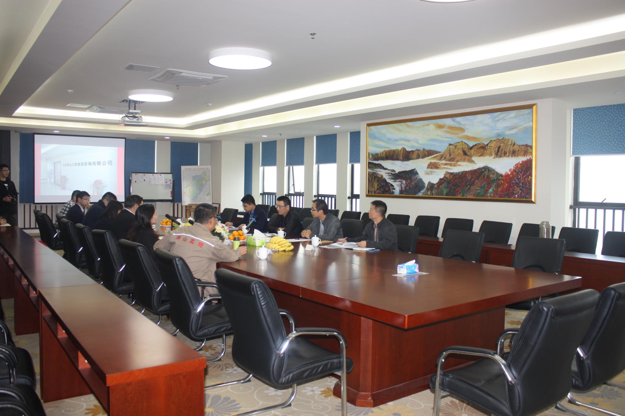 首先,董事长戴子扬对无锡太湖新城集团来公司考察表示热烈欢迎,向对方介绍了本公司的基本情况以及BIM技术的研究进展。无锡太湖新城集团沈总介绍了目前新城集团的情况以及此次考察的关键需求。随后,蔡玉萍和张春生分别介绍了江心洲第三方监管服务项目与2014G39华润国际社区项目。蔡玉萍主要讲解了如何做好第三方监管服务的管理办法和措施,其分别从项目的品质管理和安全文明管理两个方面进行了阐述。张春生主要讲述了项目上桩基的逆作法施工工艺以及监理在施工中的管控方法。