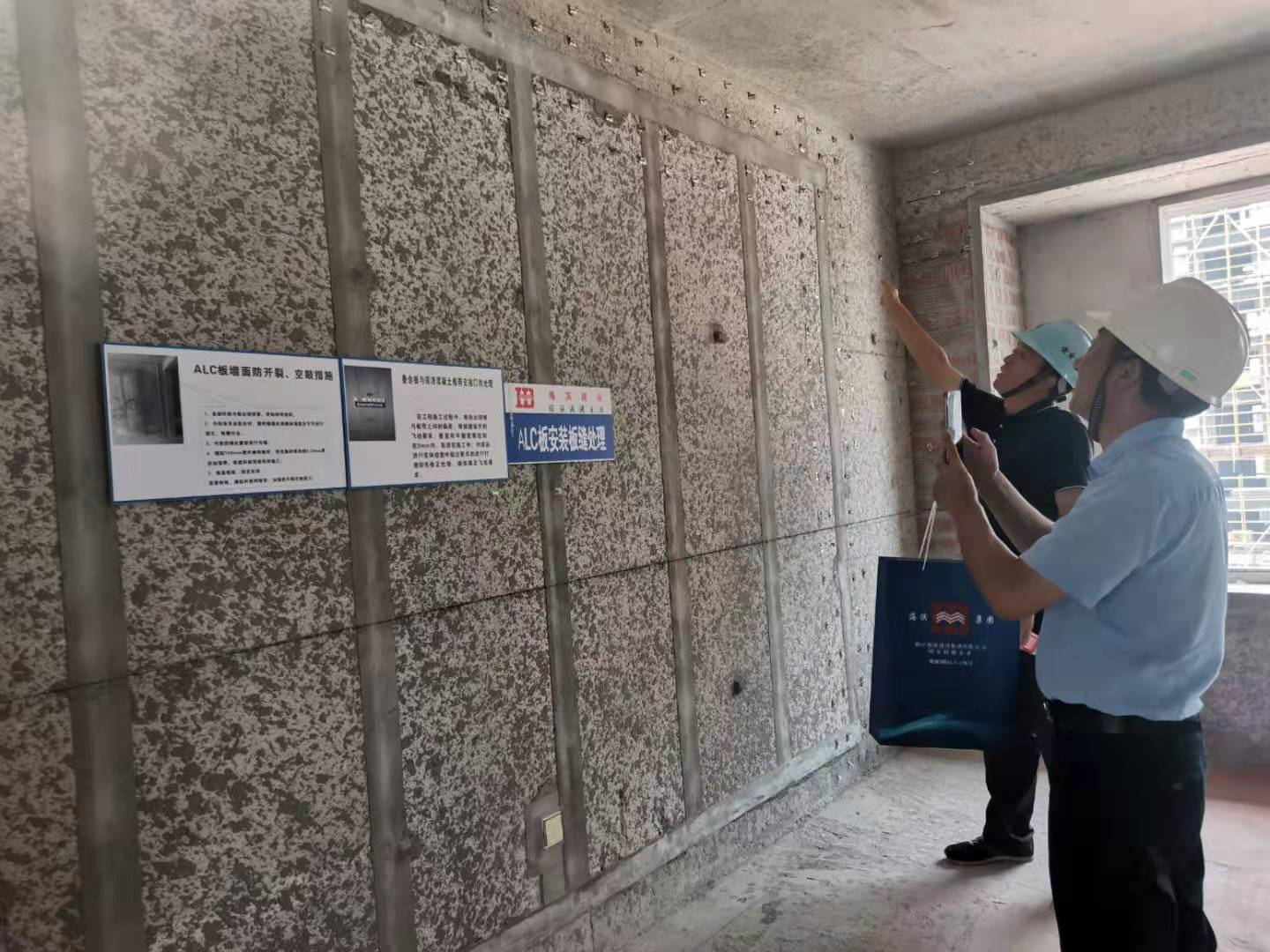 湖畔观澜别院一期(新城区L3-1地块)由29栋多层住宅楼和6栋商铺组成,地上4--8层为住宅,地下1层为车库,总建筑面积约为13万M2(包括地库的面积)。本次观摩示范点安排在18#楼一层到三层,一层为交付样板和工序样板展示,二层为成品展示,三层为毛坯展示。观摩重点是装配式建筑(PC)施工质量控制要点、ALC板安装及接缝处理、外墙、卫生间、门窗洞口防渗漏;内墙防空鼓、防开裂;外墙保温施工。