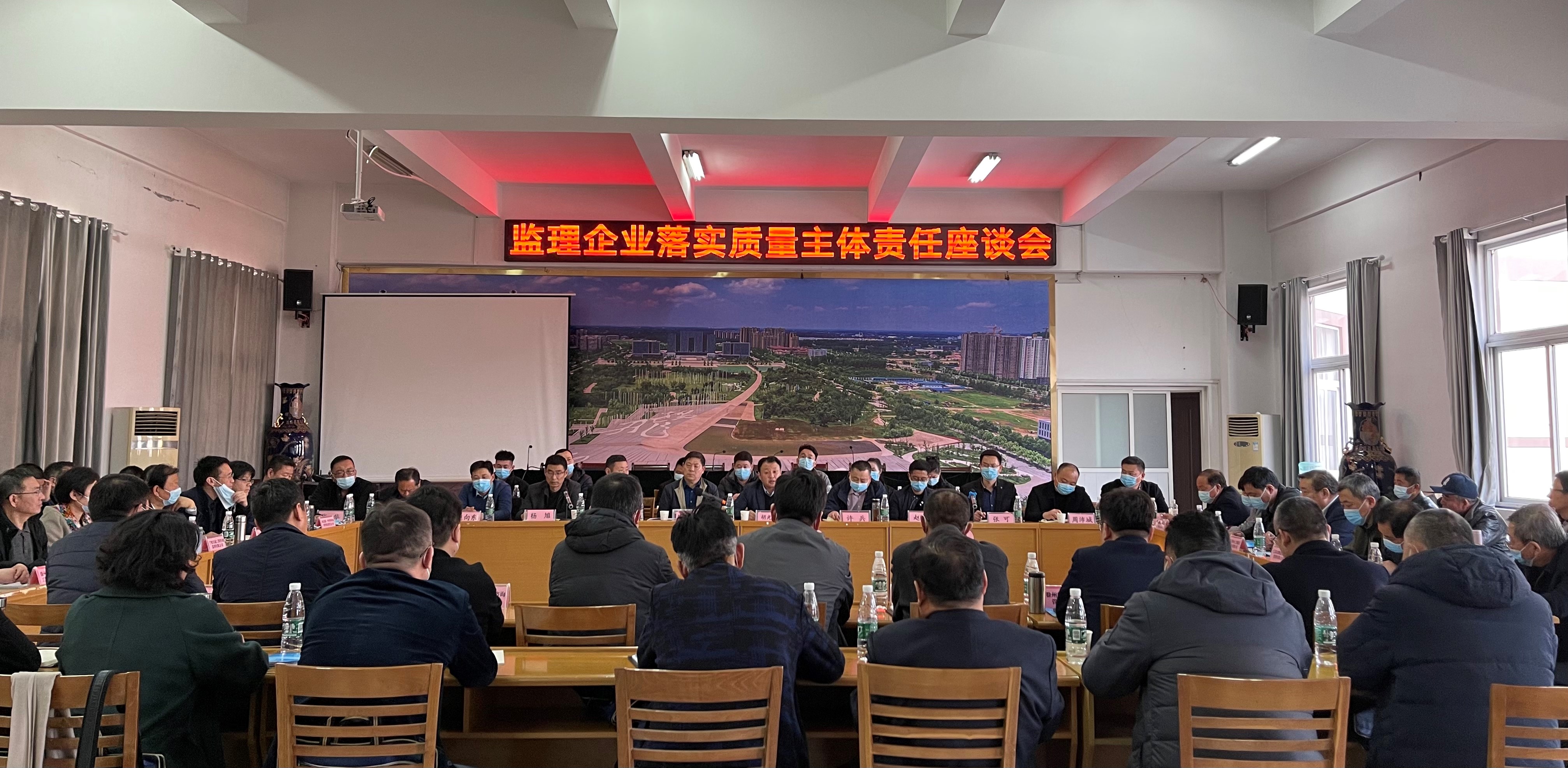 2021年2月22日,应徐州市沛县质检站通知邀请,公司董事长戴子扬、总经理李小菊参加了沛县监理企业落实质量主体责任座谈会,参加会议的质检站相关领导以及23家在沛监理单位负责人等约70多人进行了面对面座谈交流。