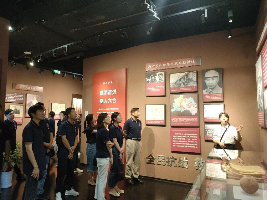 相继步入馆内。玻璃展柜中,抗战期间新四军使用过的手枪、弹壳、望远镜等物品静静地陈列着,无声地“诉说”着革命先辈浴血奋战的光辉岁月;“市长办公室”里,陈旧的桌椅记录着新四军在竹镇建立革命根据地和抗日民主政府的艰辛历程……大家边走边看,接受着抗战精神洗礼。