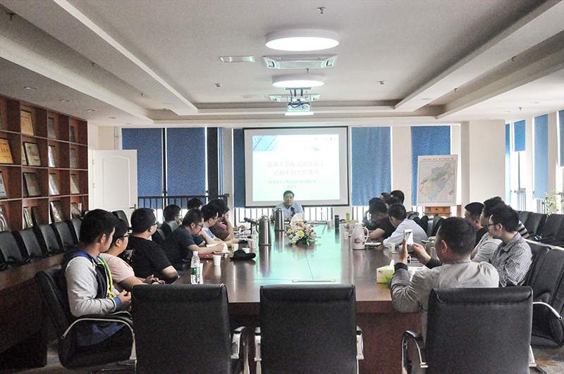会议伊始,总经理戴子扬就强调了装配式建筑是工程建筑领域的新方向,是未来建筑工业化的趋势之一。而后,宣讲人张春生总监就监理在装配式建筑施工过程中的工作要点进行了深入浅出的研究分析,装配式建筑的两个重要指标、预制构件的工艺关键、装配式建筑目前受到的制约以及工程难点进行了系统的阐述。更是别出心裁地就厂房生产和现场装配两大板块解释了监理在其中的控制要点。之后各位与会总监借此交换了各自的意见,发表了一些独到的看法。最后,戴子扬总经理总结了此次报告的重要性,以提高装配式在公司的发展。